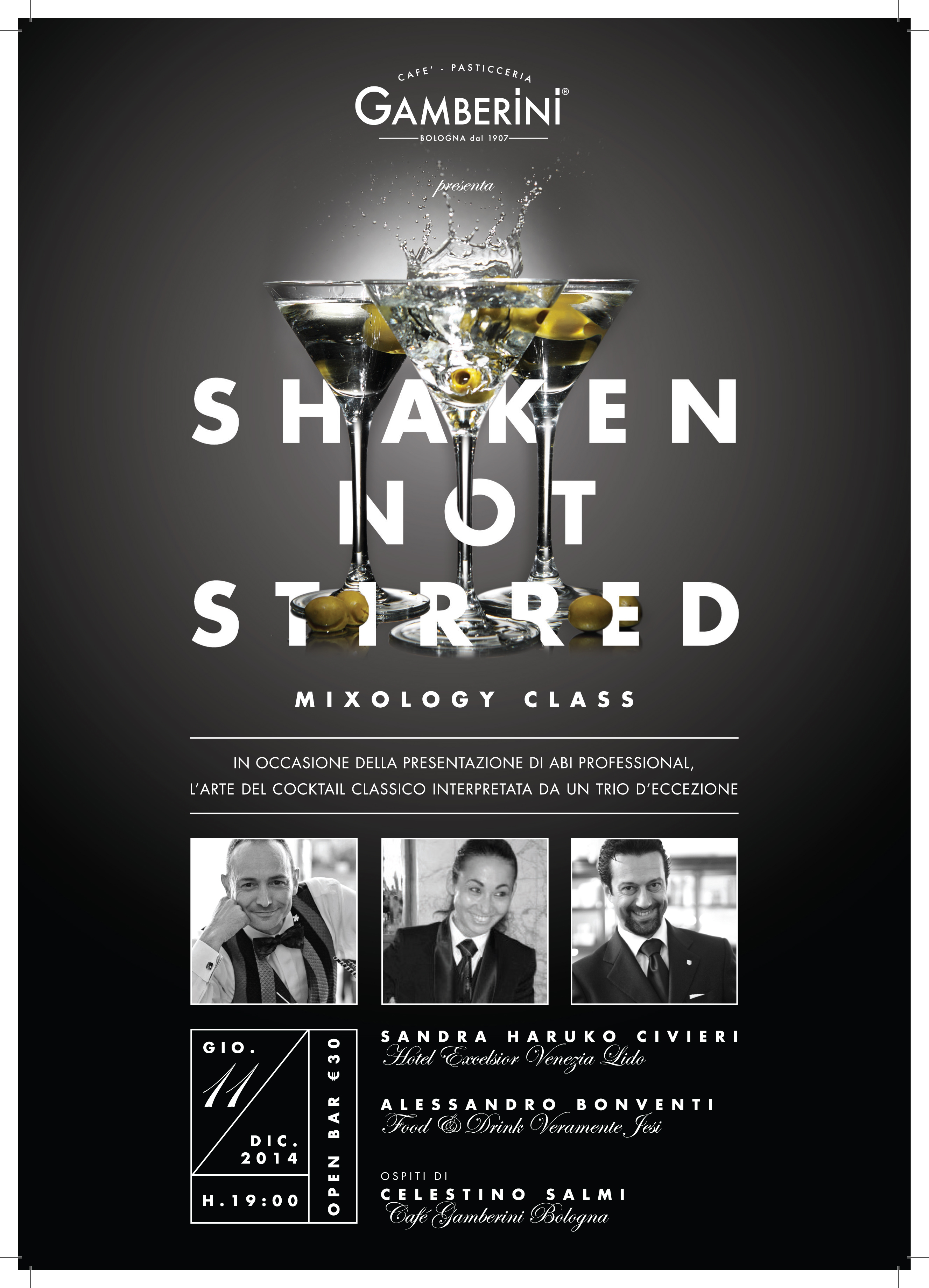 Ideatore della serata, intitolata ‘Shaken not stirred’, ovvero ‘agitato, non mescolato’, proprio come James Bond ama il suo Martini, con ospiti e proposte di cocktail originali e remixati, è Celestino Salmi, firma prestigiosa del bar di via Ugo Bassi. C’è curiosità attorno a questa nuova associazione presieduta da Umberto Caselli e Celestino – basta il nome, così è conosciuto da tutti –: l’obiettivo è «stuzzicare» i fondatori e «capire come lavorano». Insomma, quando il gioco si fa duro, e questo mestiere inizia a far gola a tanti giovani, i veri barmen duri e puri iniziano a giocare… senza però trasformarsi in ‘giocolieri’.