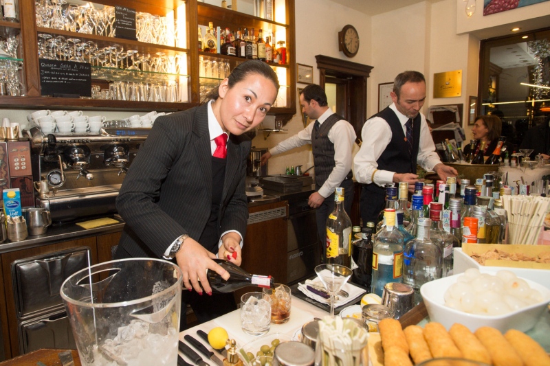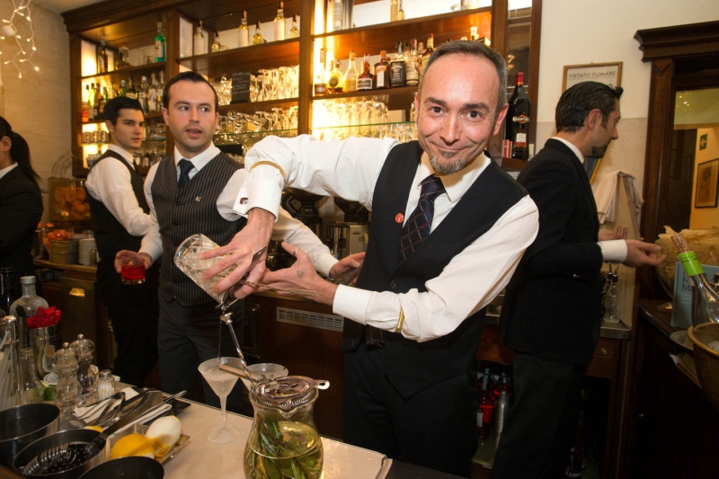 Ma perché ora va tanto reinterpretare i classici? “E’ come per la moda – spiega Celestino –: dopo un po’ la gente ha voglia di cose nuove e in questo momento c’è una rinascita del rito cocktail, come se parlassimo di un taglio anni Cinquanta che piace ma lo preferiamo con un tocco nuovo”. E prosegue: “E’ tornata in auge anche la ‘Milano da bere’, stanno emergendo tutti questi barmen con la barba, davvero simpatici con questa immagine, ma attenti alle mode che spesso distolgono dal livello alto del drink”. Lui, in questa serata speciale, proporrà un Americano Milano-Torino, ovvero ‘MiTo’, sostituendo il bitter Campari con il vermut della Carpano, che è l’antica formula. E la variazione sarà la shakerata che renderà questo vermut ricco di china e rabarbaro, quindi pesante, più fluido. Civieri ha invece ideato un Martini con oliva ripiena di blue cheese e Bonventi ricette molecolari.