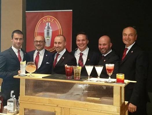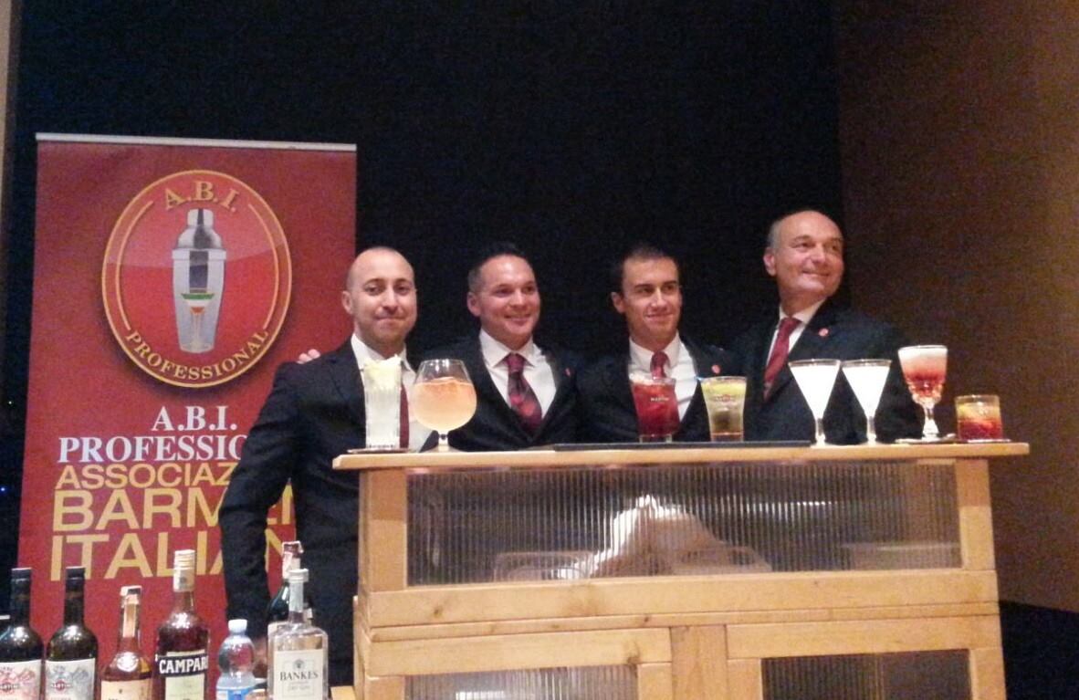 Quattro super Barmen dell’A.B.I. Professional: Lorenzo Uberti, Fabio Luison, Julien Colombo e Gianmario Artosi.