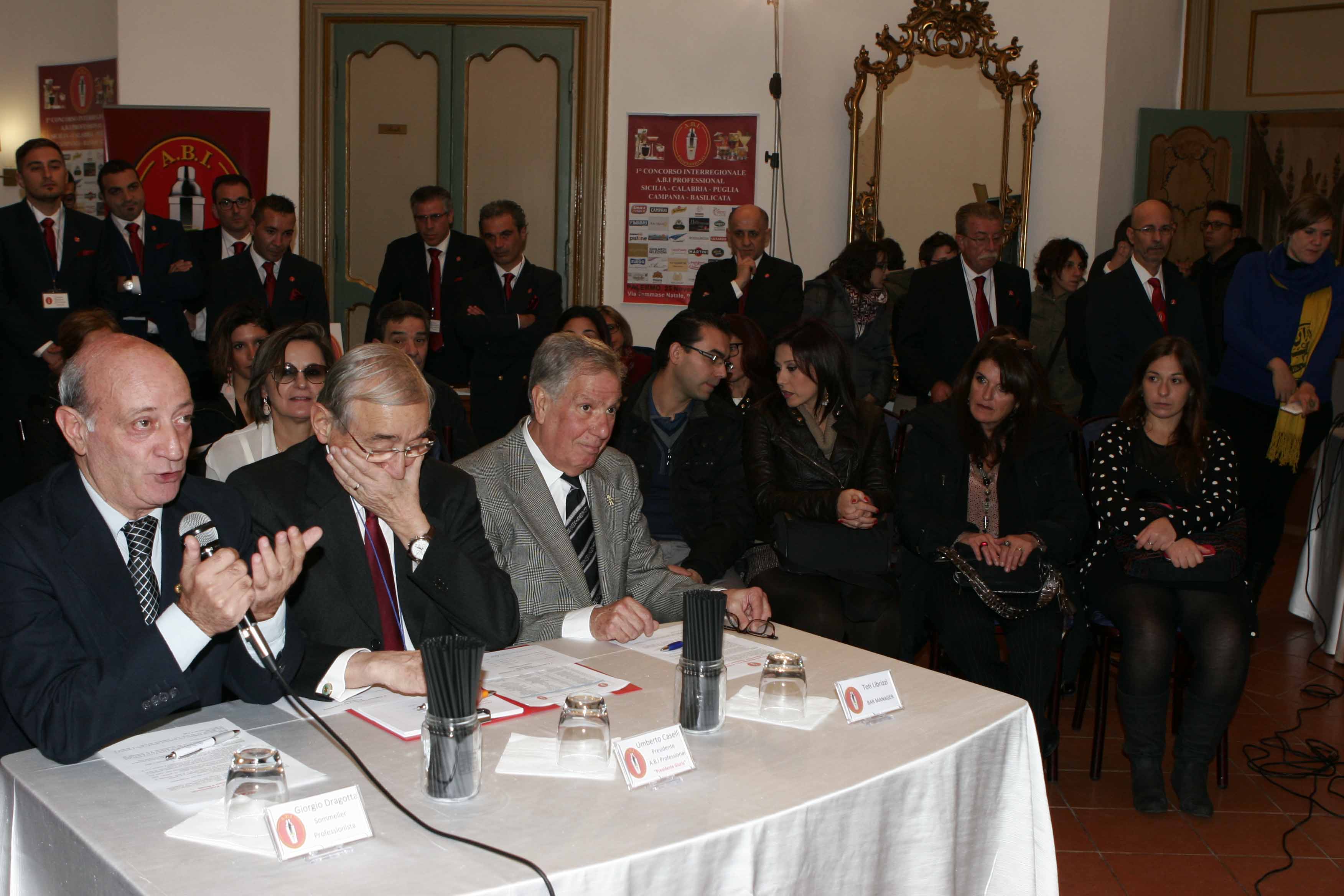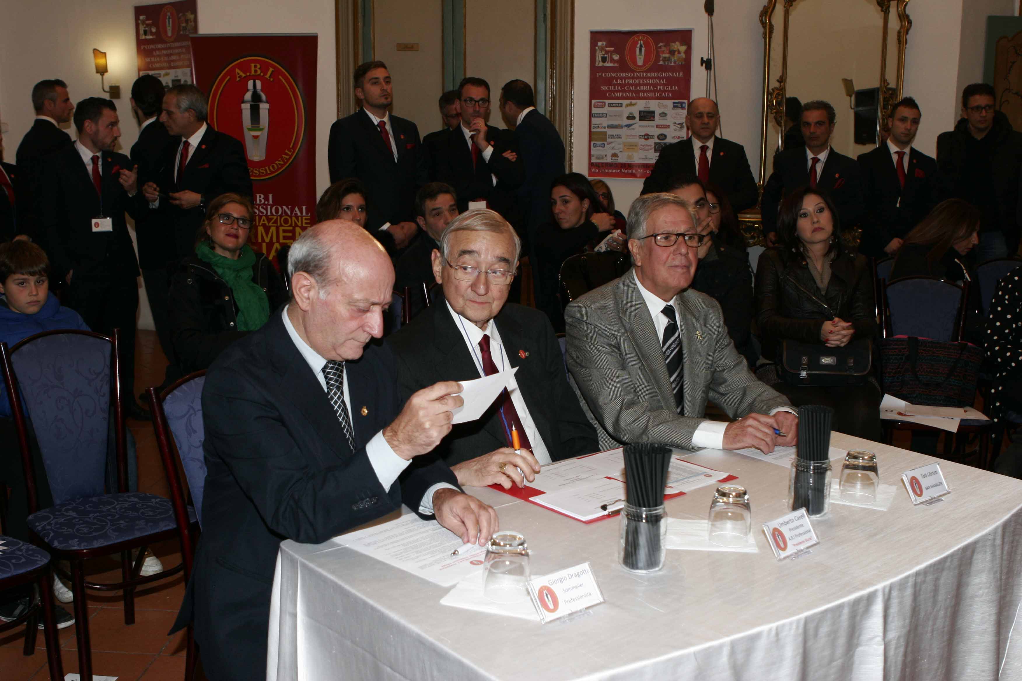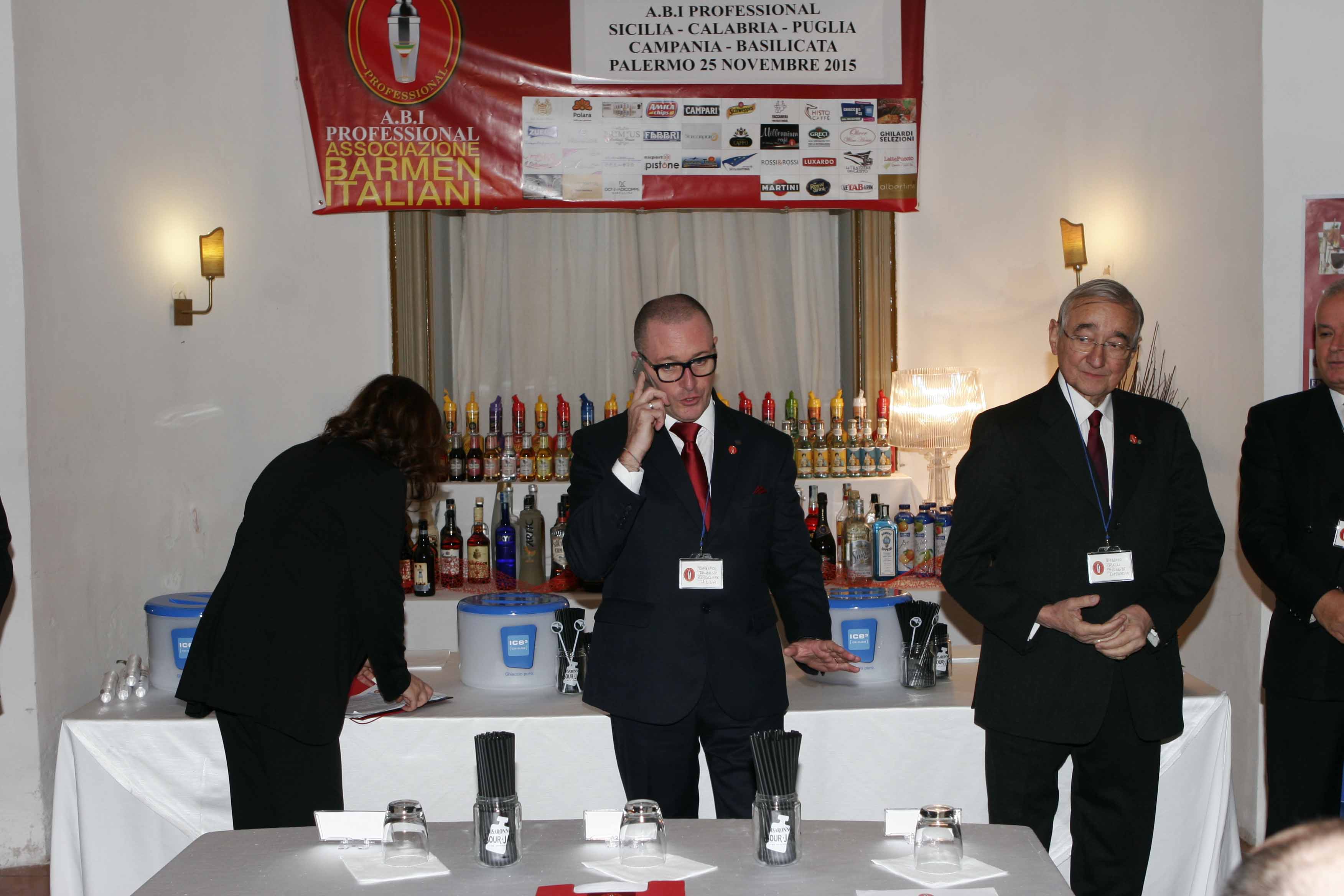 Tutti gli sponsor presenti sono stati menzionati e ringraziati con una targa ricordo, consegnata direttamente dal presidente nazionale ABI Professional Umberto Caselli, che con la sua presenza ha visionato รจ garantito che tutta la manifestazione si svolgesse nel massimo della trasparenza, coadiuvato da Domenico Randazzo (consigliere nazionale e direttore del concorso) e l’instancabile Angelo Campora (revisore dei conti). Tutto il team tecnico e lavorativo, invece, รจ stato gestito a 360 gradi dal coordinatore Tony Pergola (capo barman del grand’Hotel Wagner) che con la sua esperienza pluriennale a trasmesso a tutti i colleghi la serenitร per poter gestire al meglio ogni piccolo dettaglio. Tutti i componenti del gruppo di lavoro sono barman di grande esperienza e quindi รจ stato abbastanza compatto per poter affrontare e risolvere ogni problema che poteva presentarsi.