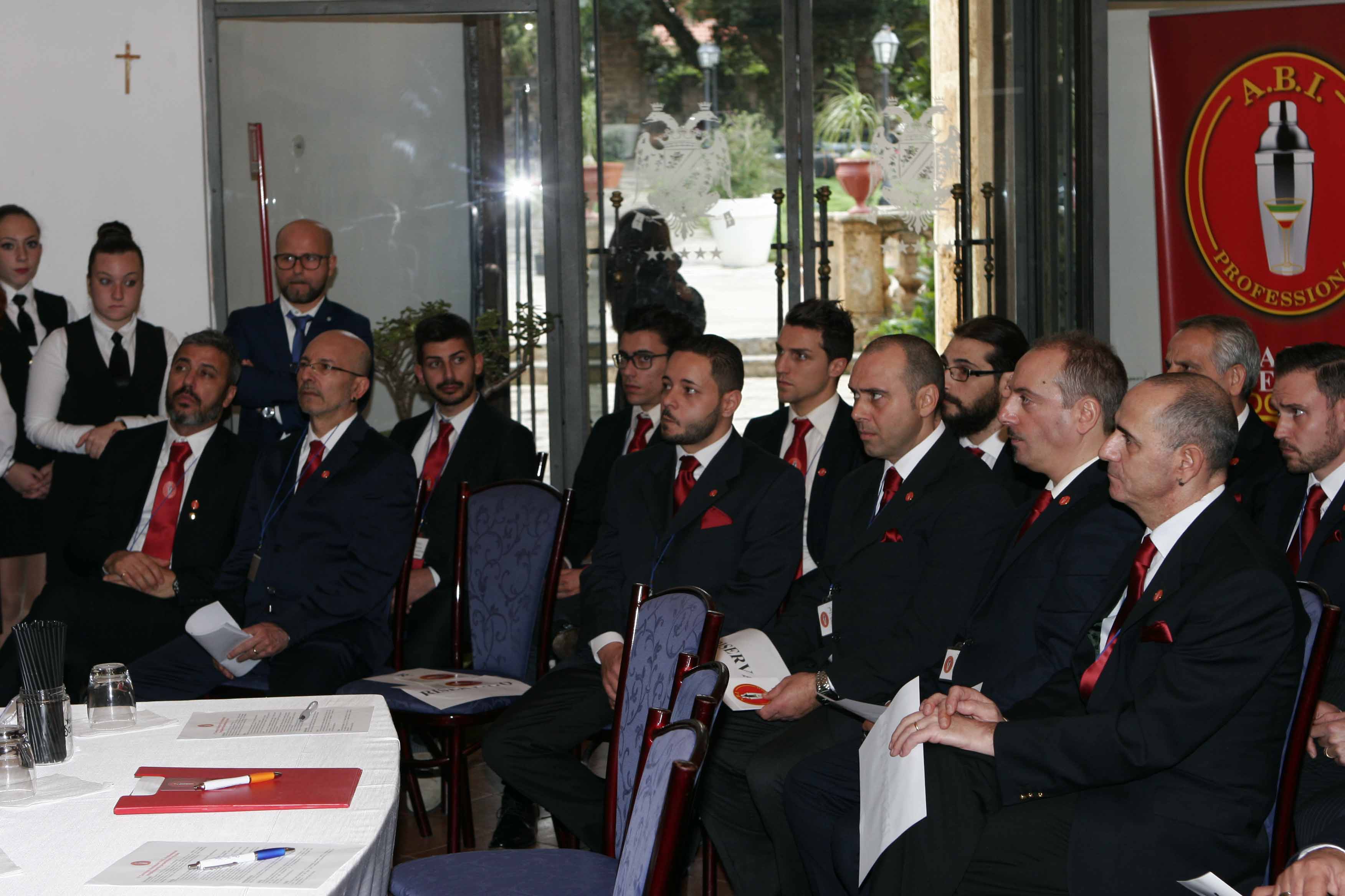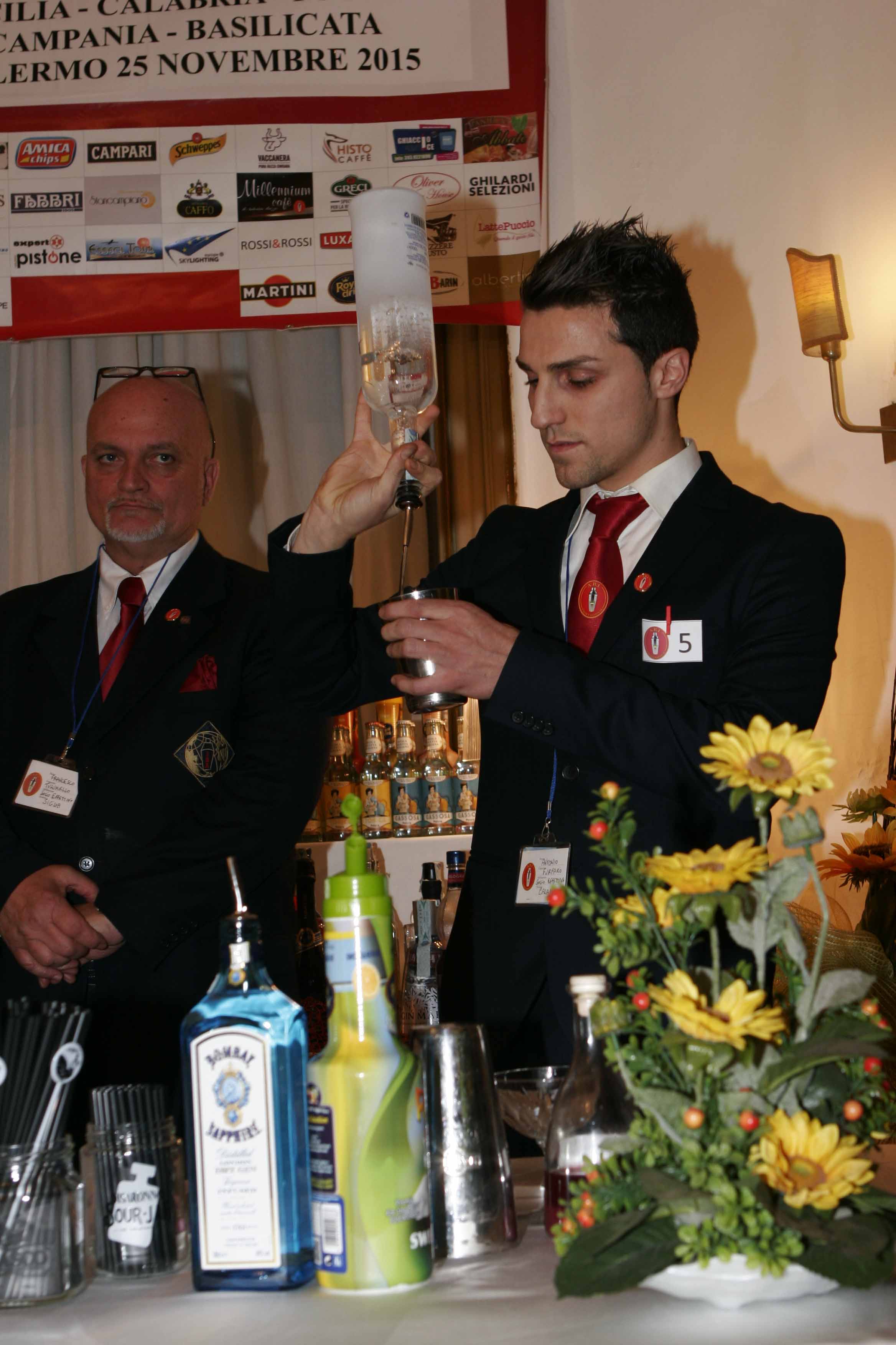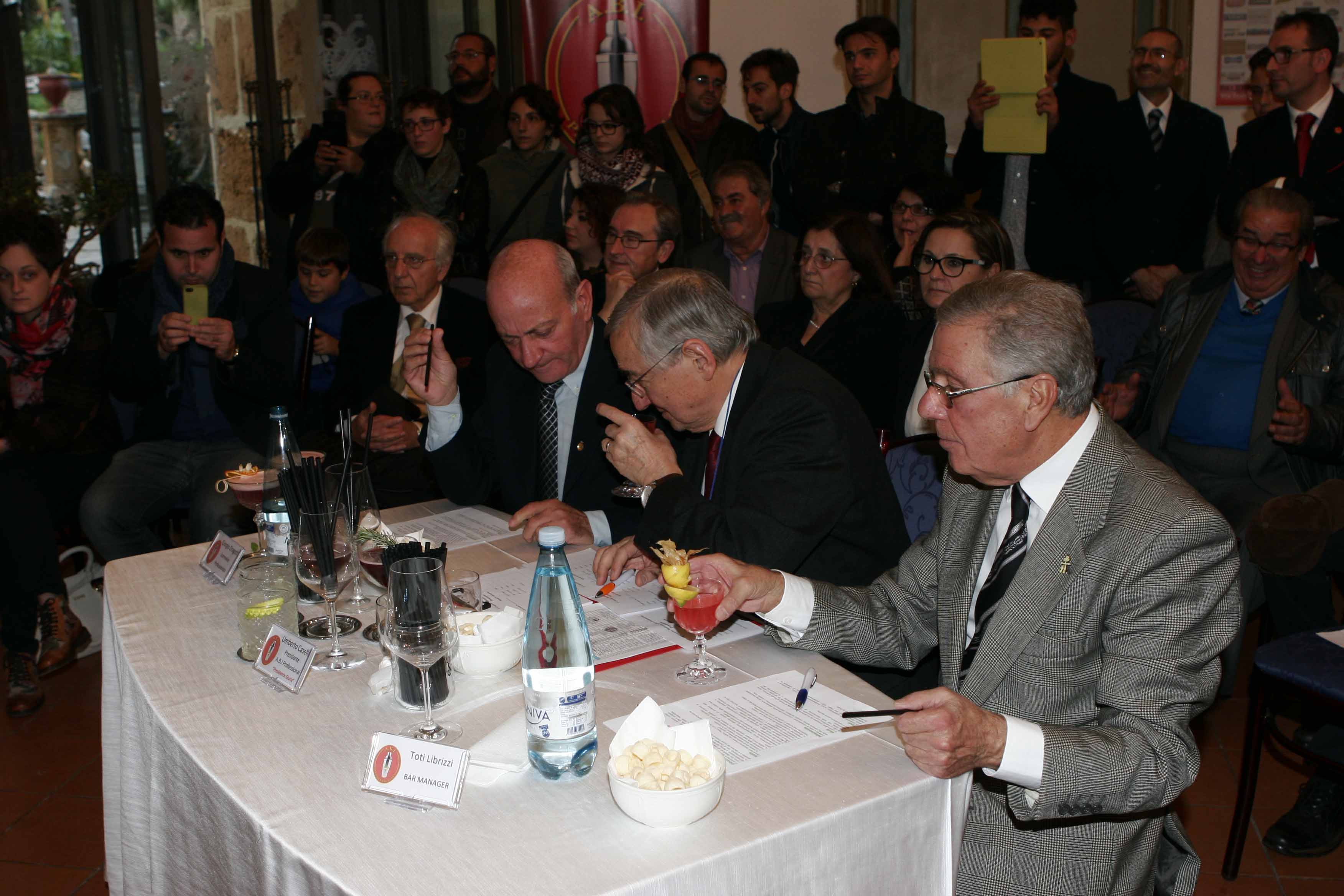 Il concorso si รจ aperto con un minuto di silenzio in commemorazione delle vittime del terrorismo e con lโinno nazionale , poi tutto si รจ svolto in un clima di totale entusiasmo collaborazione e solidarietร , soprattutto nell’aiutare o consigliare il collega che doveva gareggiare,magari preso in quel momento da quel pizzico di emozione, che regna in ogni competizione. Efficientissimi anche i colleghi assistenti del banco lavoro dove tutto rasentava l’impeccabilitร . Finito il concorso, ai giudici รจ spettato il difficile compito di assegnare i premi, (della giuria facevano parte il presidente Umberto Caselli, Toti Librizzi, storico bar manager Hotel delle Palme e Giorgio Dragotta, sommelier professionista dello storico Charleston di Mondello) visto l’alto livello sia di professionalitร che di numero di partecipanti.