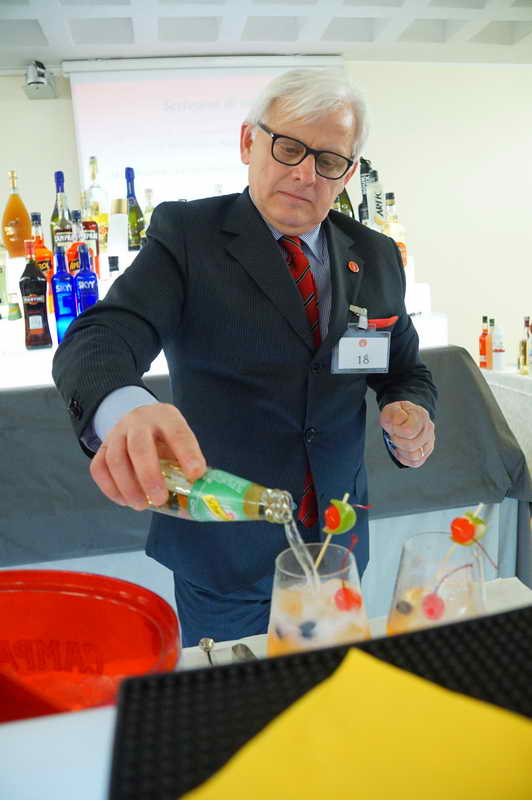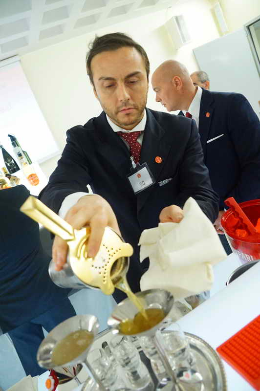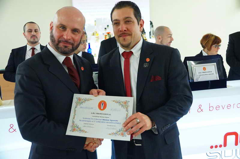 La giuria degustativa del concorso era composta da esperti professionisti delle varie associazioni consorelle di solidus , Giorgio Rinaldi del consiglio nazionale di A.I.S. ( associazione Italiana sommelier ) il Sig. Romano di A.M.I.R.A. ( Associazione Maîtres Italiani Ristoranti ed Alberghi ) ed il nostro presidente A.B.I. Professional Umberto Caselli nonchè presidente onorario I.B.A. ( International Bartender Association ) , credo che sia la cosa più piacevole e difficile da fare per un Barman , il mostrare il proprio modo di lavorare a dei colleghi cosi qualificati , capaci di cogliere quelle sfumature , Quegli accorgimenti e quel linguaggio non verbale che ad un occhio inesperto potrebbe sfuggire .